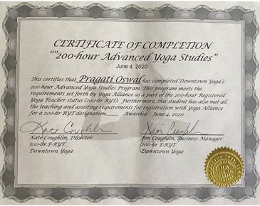 Certificate of Completion 200-hour Advanced Yoga Studies